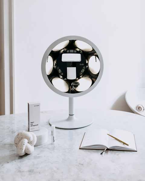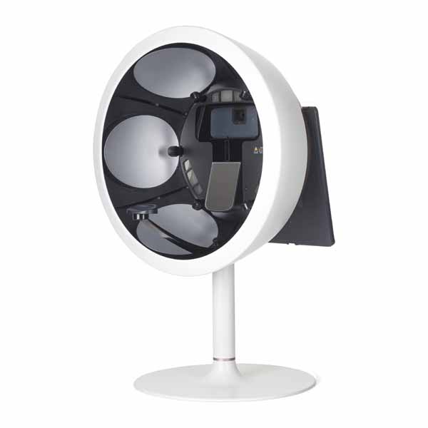 Nachdem Sie sich in einer bequemen Sitzposition platziert haben und Ihr Kinn auf die vorgesehene Stütze gelegt haben, wird der Observ® mit einer Art Haube abgedeckt und verdunkelt, um den Fokus auf Ihr Gesicht zu legen. Dann heißt es: Klick, klick, klick! Schon liegt die Auswertung mit 8 Bildern vor, die wir gemeinsam analysieren können, um einen individuellen Pflegeplan zu erstellen.